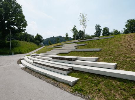 Protihluková stěna a jednostranní tribuna na svahu