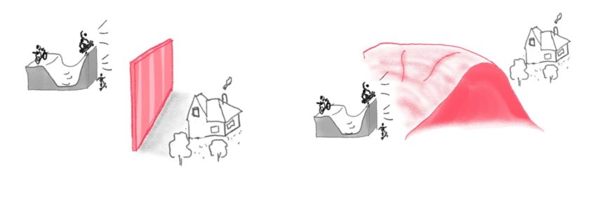 2. Citelný útlum hluku díky nenápadnější bariéře integrované do terénu a využité také pro sportovní aktivity, s rozšířením svahu.